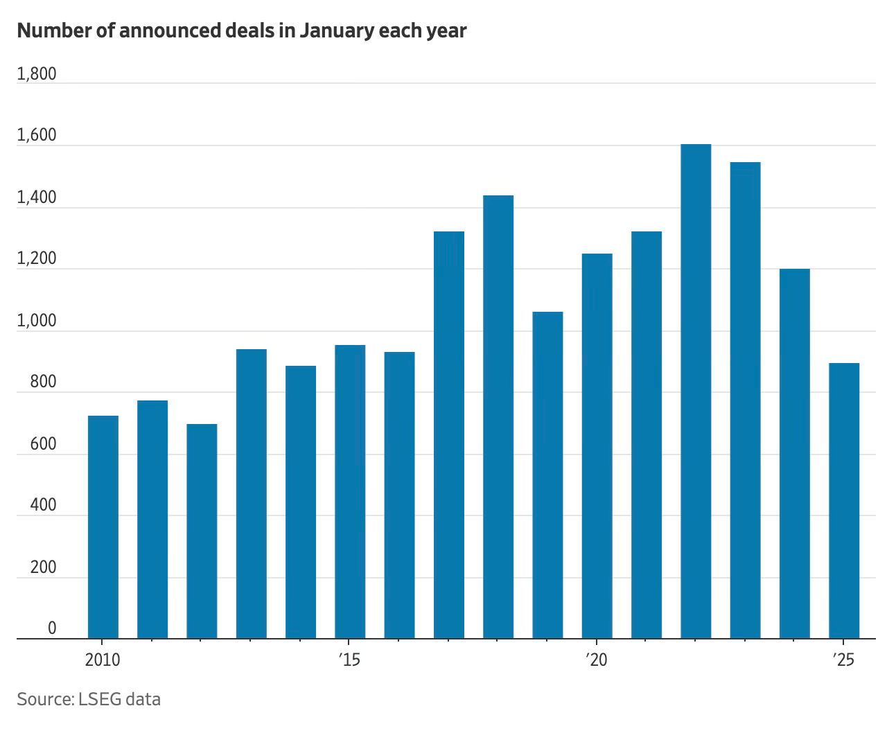 Well that was a quick turnaround. The optimism seen by CEOs around policy stability, deregulation, and strong “animal spirits” has rapidly dissipated as President Trump's aggressive trade policies send shockwaves through corporate America. Dealmaking activity has plummeted to its lowest level in a decade, with January M&A activity falling 30% decline from the previous year. This is despite widespread forecasts that Q1 25 would be a boom for pent-up M&A activity tempered by an aggressive Biden DoJ and FTC.