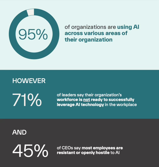 Only 14% of organizations have successfully aligned their AI investments with workforce strategies, suggesting that most companies are essentially forcing square pegs into round holes, with predictably messy results that could undermine both productivity gains and employee morale.