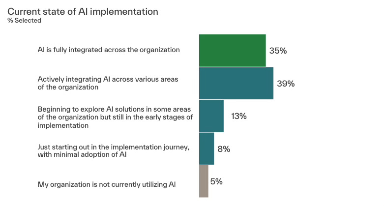 The percentage of industries increasing AI usage — including industries less obviously exposed to AI such as mining and agriculture