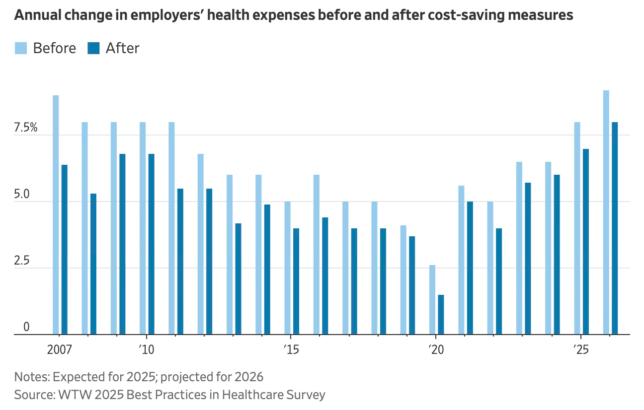 Employer health-benefit costs are projected to rise 6.5% next year, the fastest increase since 2010. For small firms, that makes health coverage the second-largest expense after payroll, with many redesigning plans, raising premiums, and shifting more costs onto workers. For businesses already struggling with tight margins, these increases are no longer just a budgeting challenge but a rising financial risk.