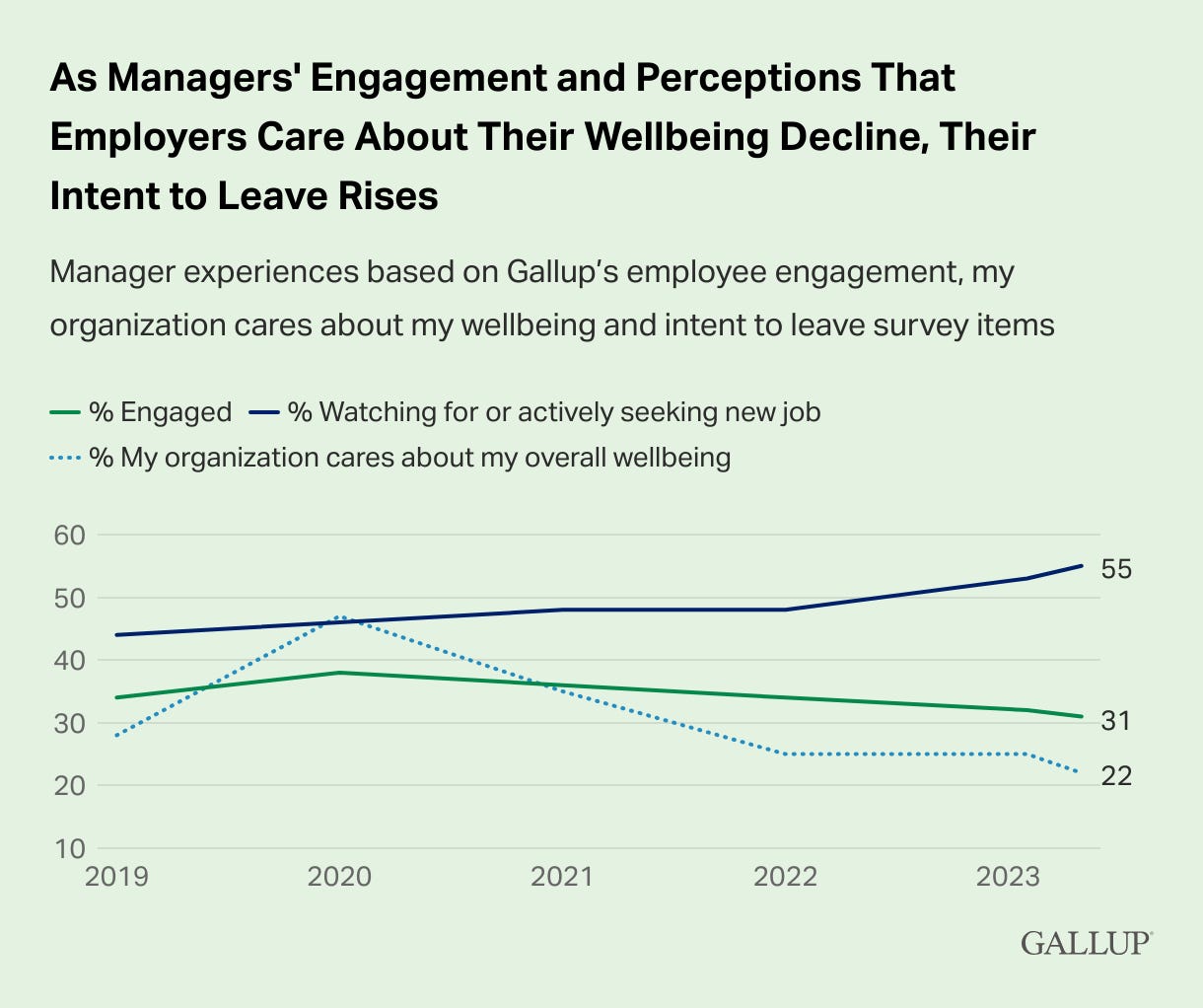 At the macro level, uncertainty continues to abound as nobody really understands why the economy is performing as well as it is, few people really understand AI but nearly everyone will continue talking about it, and an election year promises more political noise and regulatory headaches alike. Labor markets will happily be less of a focus in 2024, although employee engagement will still struggle as younger workers become the largest cohort and middle managers continue to languish without targeted help.